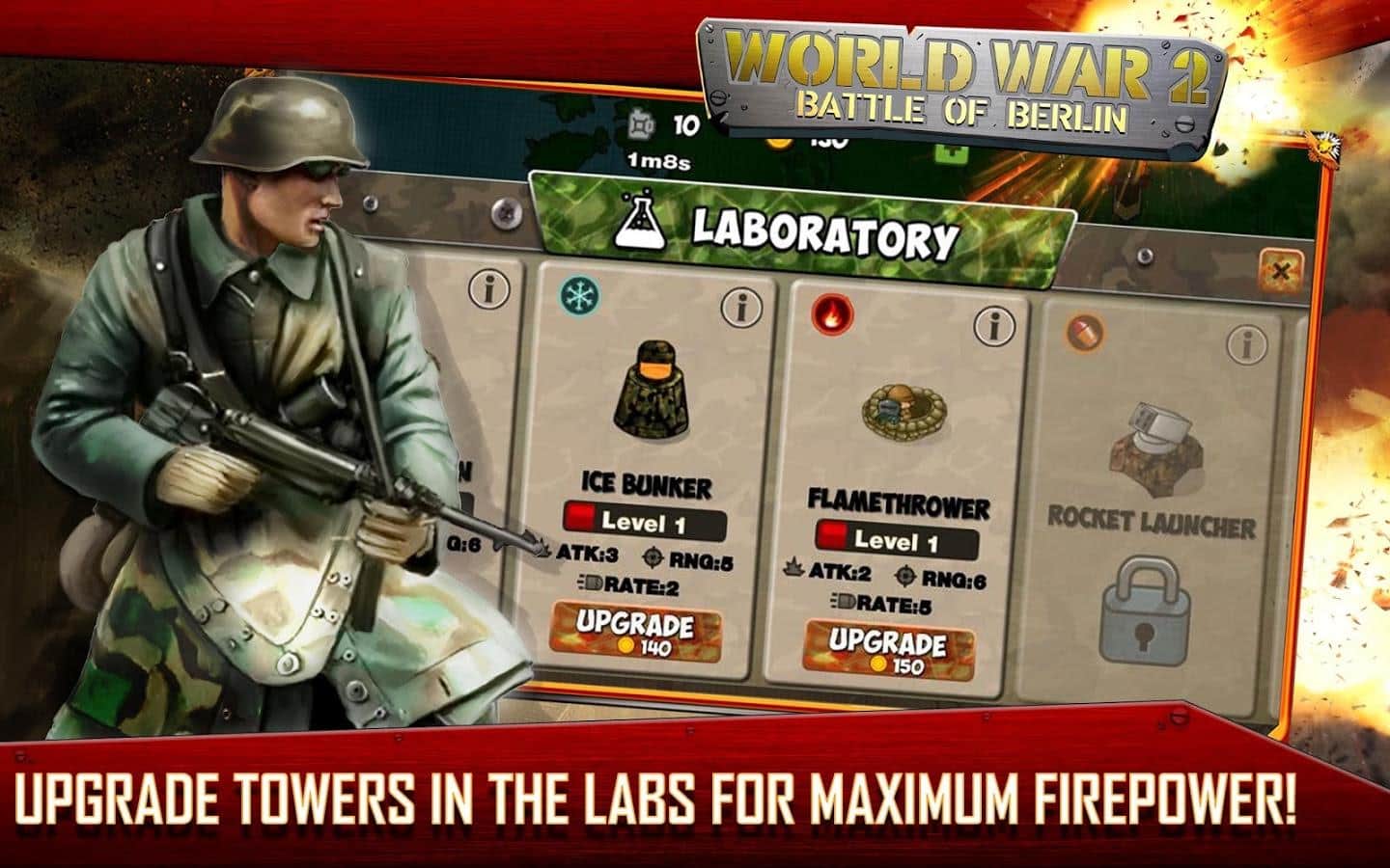 İkinci Dünya Savaşı: Berlin Savaşı - İkinci Dünya Savaşı sona yaklaşmakta. Müttefik ordular ve Sovyet Ordusu, Almanya İmparatorluğu'nun başkentine çok yaklaştı. Almanya çok yakında düşecek, ancak şu anda Berlin için savaş yeni başlıyor. Oyun, ilginç bir kule savunma oyunudur. Umut vaat eden yetenekli bir komutan olarak Alman birlikleriyle oynuyoruz. Her ne olursa olsun askeri kampanyayı koruyun ve zafer için çabalayın.