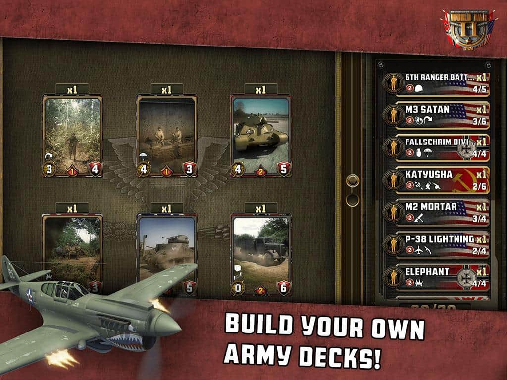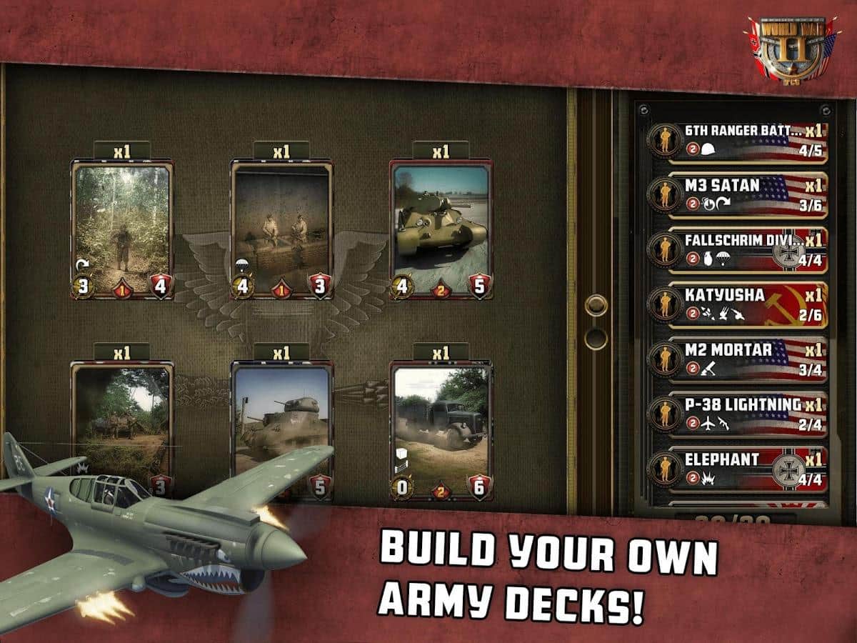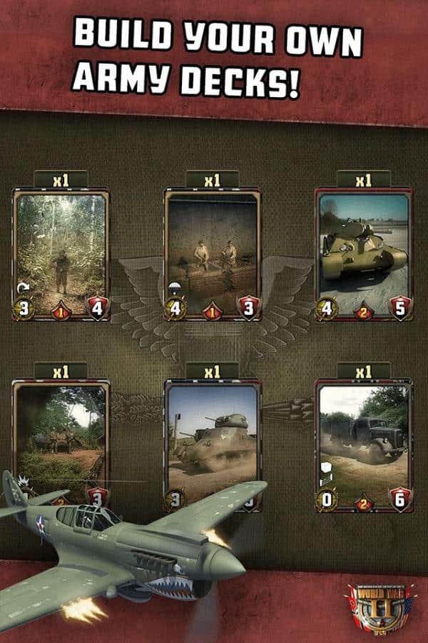 İkinci Dünya Savaşı: TCG - Bu, İkinci Dünya Savaşı dekorlarında geçen ücretsiz bir koleksiyon kart oyunudur. Piyade, zırhlı araçlar ve havacılık ile ordunuzu toplayın, birliklerinizi en yeni silahlarla donatın, düşmanı beklenmedik emirlerle şaşırtın! Sizi dört ülkeden 200 birlik ve silah kartı, 100'den fazla görev bekliyor. Ordunuzun başkomutanı olun!