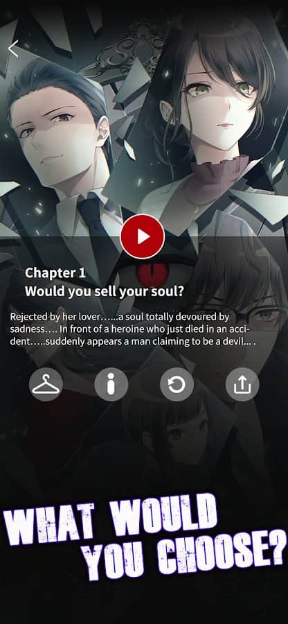 Ruhunuzu satar mıydınız?: görsel romanlar - Bu dedektif romanının geçişine bağlı olarak seçiminizdir: Ruhunuzu Şeytana mı satacaksınız yoksa onu kendinizde mi tutabileceksiniz? Diğer karakterlerden kendinizi farklı kılın ve hayatta kalmak için Şeytana yardım edin. Çok sayıda anlam, şaşırtıcı hikaye, ciddi kararlar ve ruhsal düşünceler içeren büyük bir senaryoya dalın. Sürekli seçim yapın ve zorluklarının ne olursa olsun her türlü sonuca hazırlıklı olun. Dış görünüm anime tarzında tasarlandı, bu yüzden bu oyun kesinlikle birçok kişiye hitap edecek.