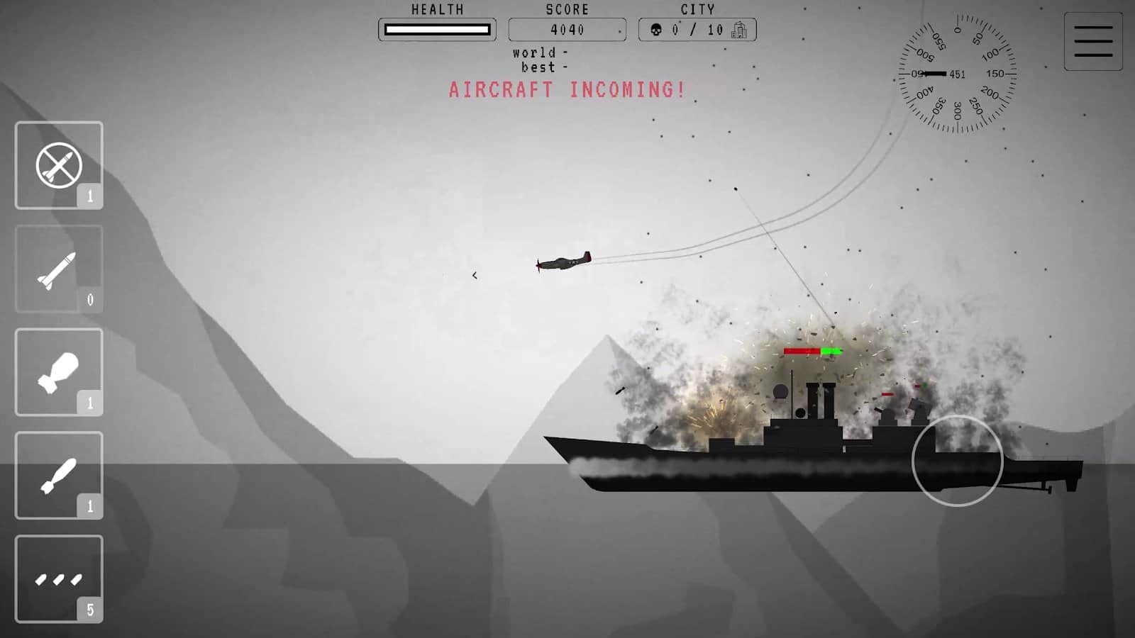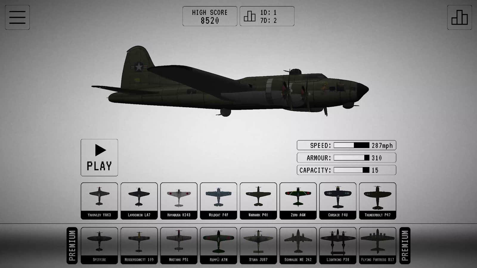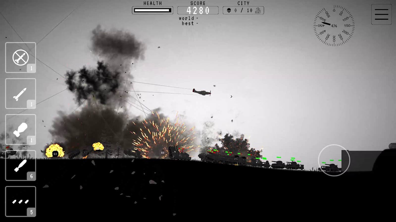 II. Dünya Savaşı Savaş Uçağı Bombardıman Uçağı - güçlü bir bombardıman uçağını kontrol edeceğiniz ve dünyaya tehdit eden herkesi yok ederek savaşa gideceğiniz bir oyun. Gökyüzünde inanılmaz bir mücadele var ve sadece sen düşman saldırısını durdurabilirsin.