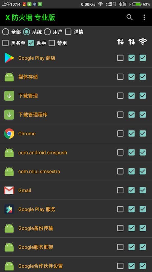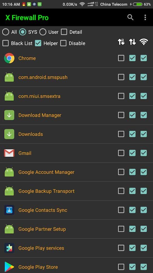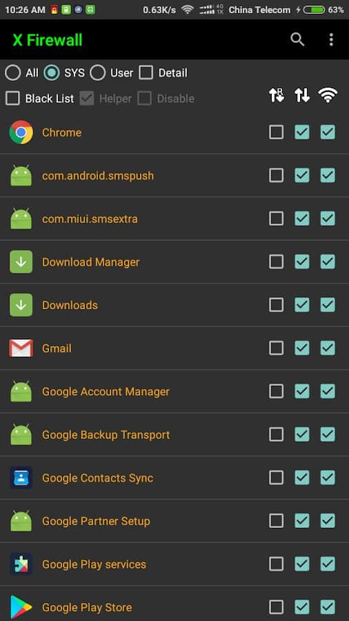 X Firewall (kök, köksüz) - Gerçekten ihtiyaç duyduğunuzda kök haklarını hızlı ve kolay bir şekilde bağlayın! Sınırlamak istediğiniz yerlerden listeden mevcut uygulamaları ve diğer kategorileri seçin, tam tersine, daha fazla eklemek istediğiniz yerleri belirleyin. Uygulama genel olarak 3 farklı çalışma modu desteklemektedir: köksüz, kök ve xposed. Bu ayarların her birini manuel olarak deneyebilir ve bu ayarları ne zaman kullanmanız gerektiğine karar verebilirsiniz. Gerekli onay kutularını bir kez işaretleyin ve uygulamanın çalışmasını ayarlamanız gerektiğini unutun.