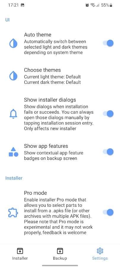 XAPKS Yükleyici, Android için oyun ve uygulamaları akıllı ve basit bir şekilde yüklemeye yarayan bir yükleyicidir. Uygulama sayesinde OBB, APK, XAPK, APKM dosyalarını hızlı ve kolay bir şekilde yükleyebilirsiniz. Dosyaların toplu yüklenmesi hem dahili bellekten hem de SD karttan mümkündür. Uygulamada gece moduna geçiş ve 12 farklı renk seçeneği mevcuttur.