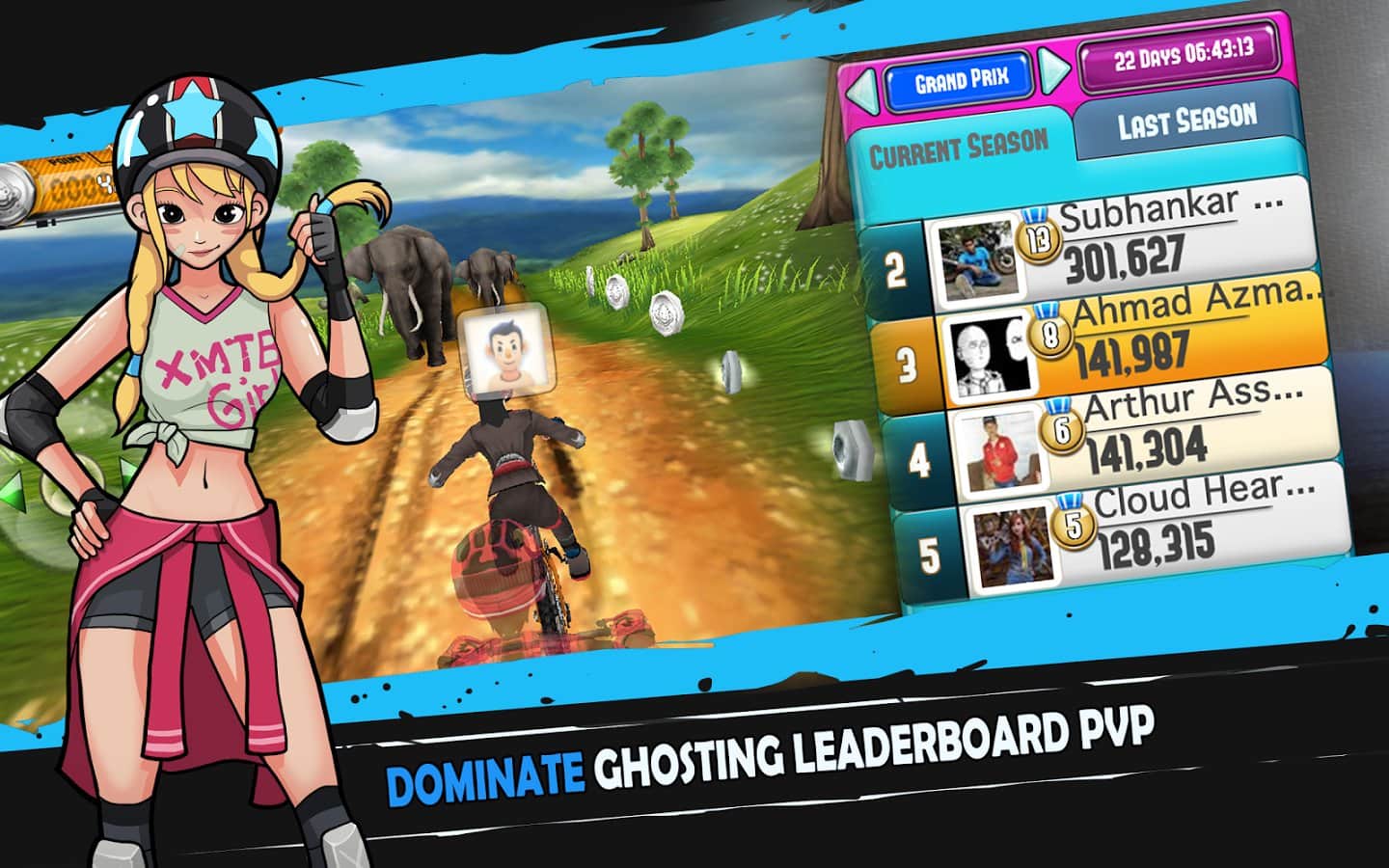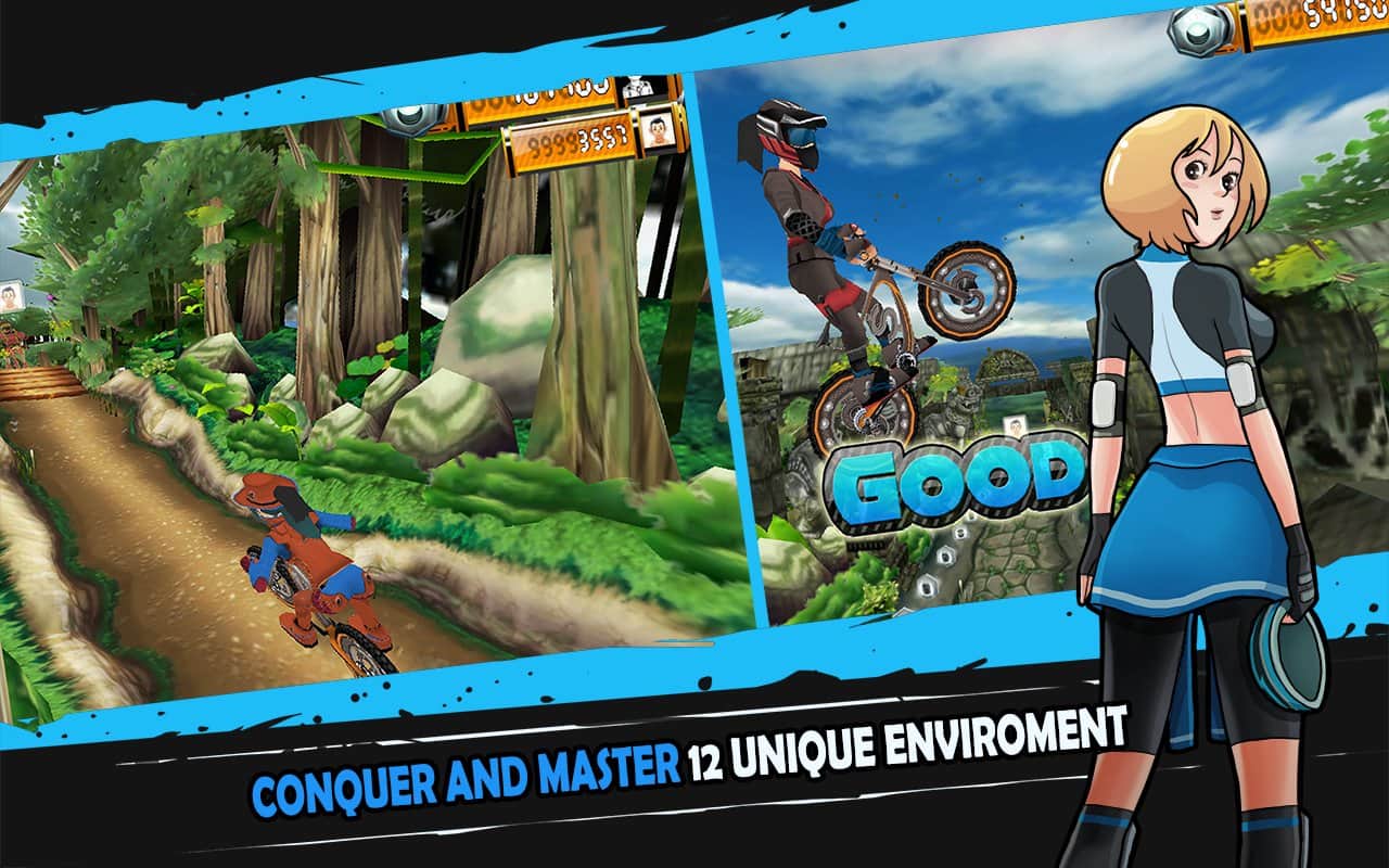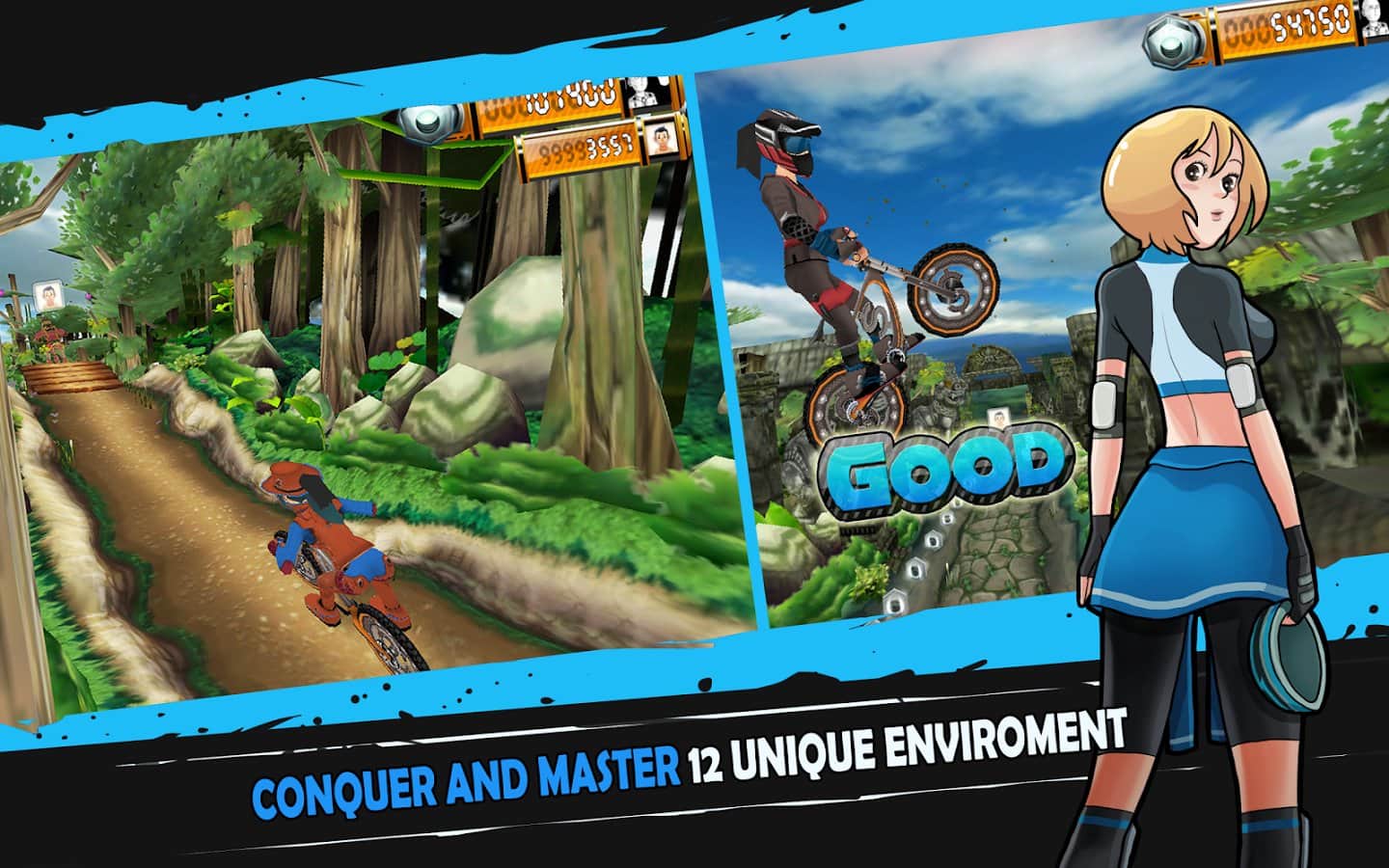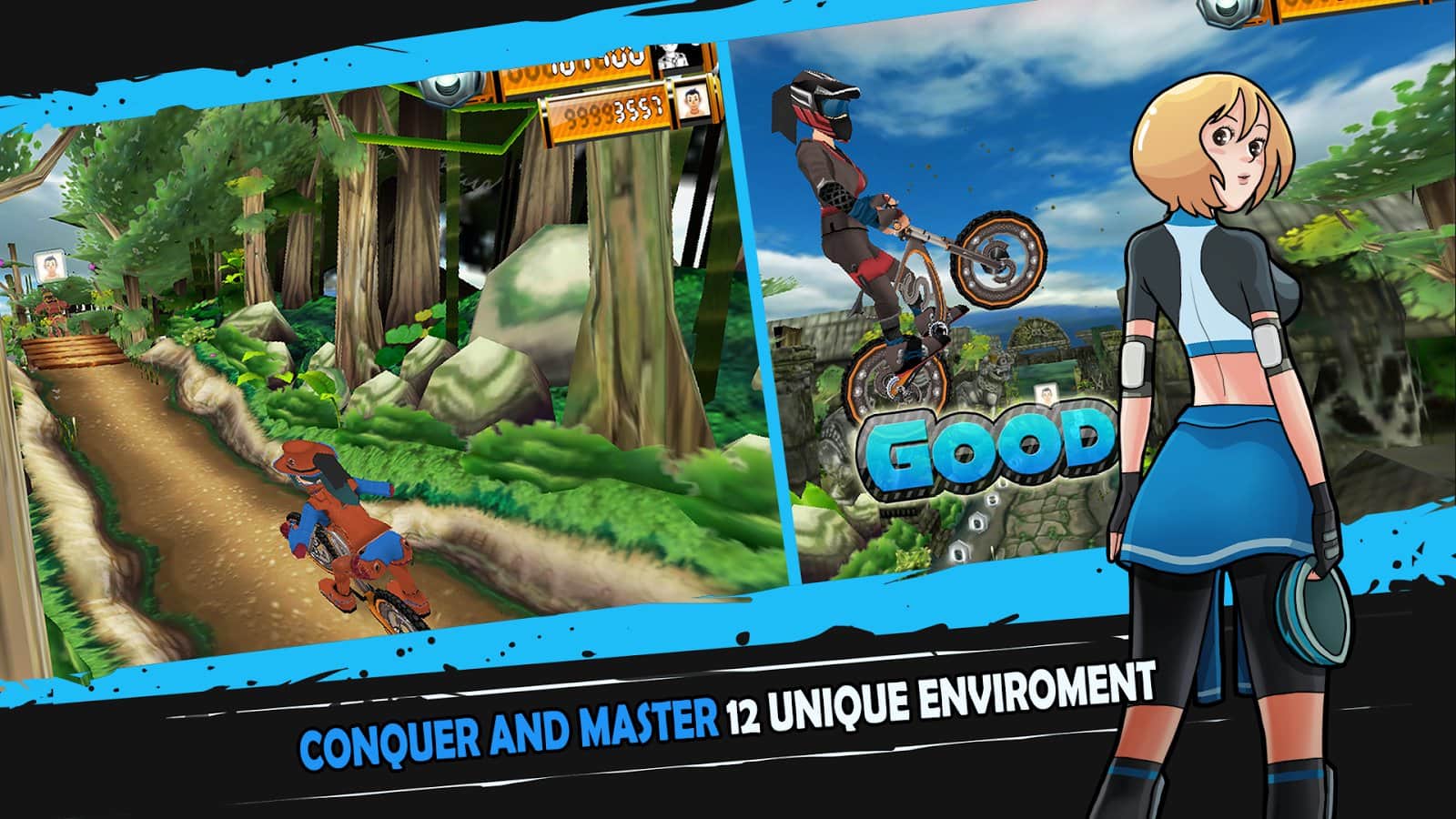 Xcite Dağ Bisikleti - Android için spor odaklı sıradışı bir koşucu. Bisikletle ormanda dolaşacak ve para toplayacaksınız, bu arada uzun atlayışlar yaparak çeşitli numaralar gerçekleştireceksiniz. Bunun için ekranda belirecek kombinasyonu yapmalısınız. Tüm yolculuğunuz, uçurumlar, ağaç kütükleri, dar geçitler gibi 20 farklı engelin bulunduğu yedi farklı bölgede geçecek. Oyun boyunca, profesyonel bisikletçilerin kullandığı çoğu numara da dahil olmak üzere on sekiz farklı numara öğrenmiş olacaksınız. Ayrıca oyunda karakterinizi giydirme veya ona yeni bir bisiklet alma imkanı da var.