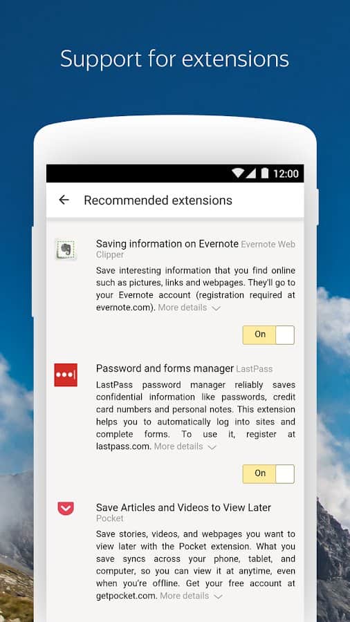 Yorumlar ile Yandex Browser üzerinde Android