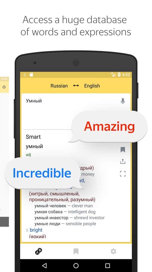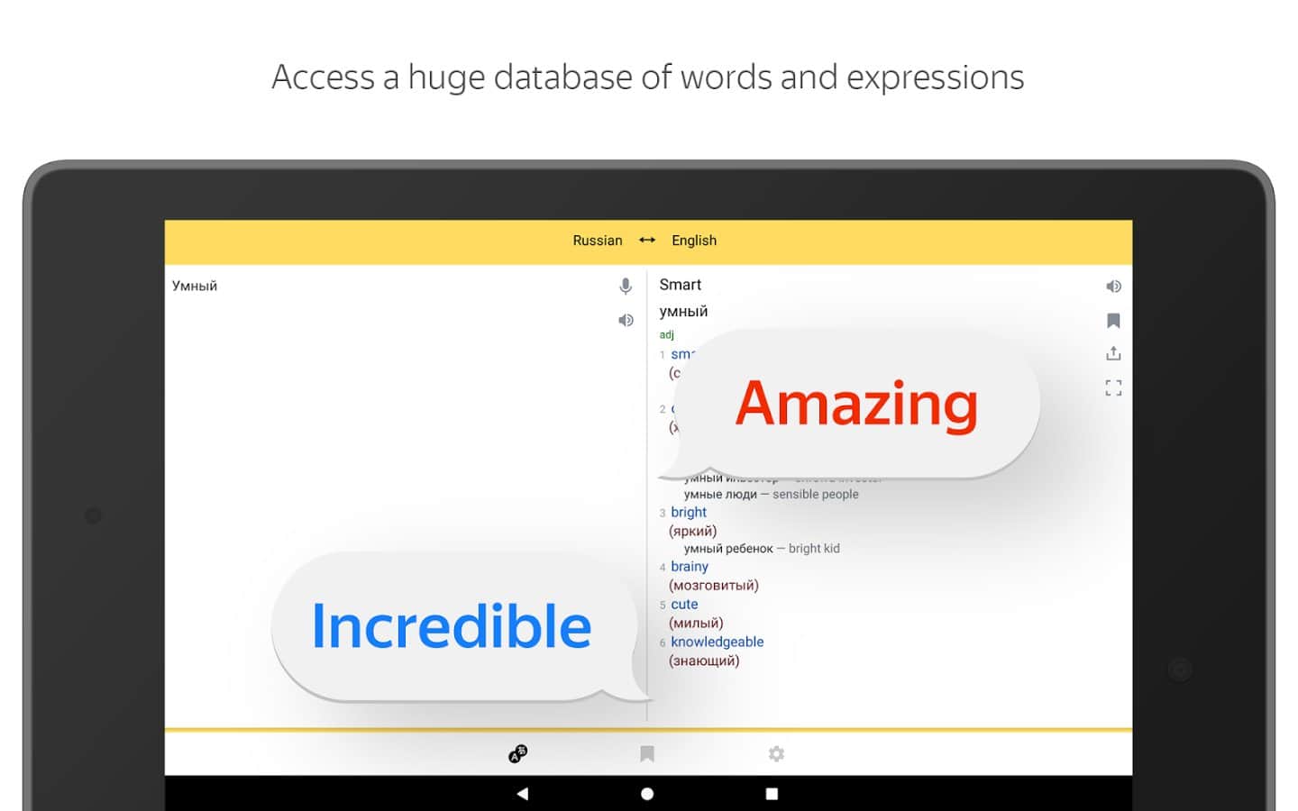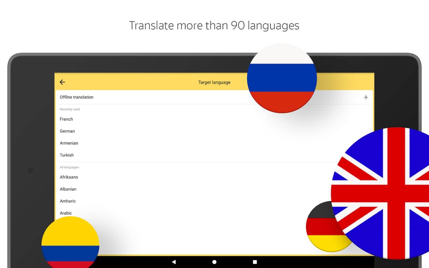 Yandex Çevirmen – Yandex geliştiricilerinden harika bir uygulama. Uygulamada, öğrenim veya işte size yardımcı olacak birçok özellik bulunuyor. İnternet olmadan 90'dan fazla dil erişiminize açık olacak; bunun için yalnızca ihtiyaç duyduğunuz sözlükleri önceden indirmeniz yeterli. Uygulamada ayrıca sesli giriş ve metin okuma, örneklerle birlikte sözlük makaleleri ve hatta fotoğraf çevirisi mevcut! Android cihazınızda fazla yer kaplamadan size yardımcı olacak vazgeçilmez bir uygulama.