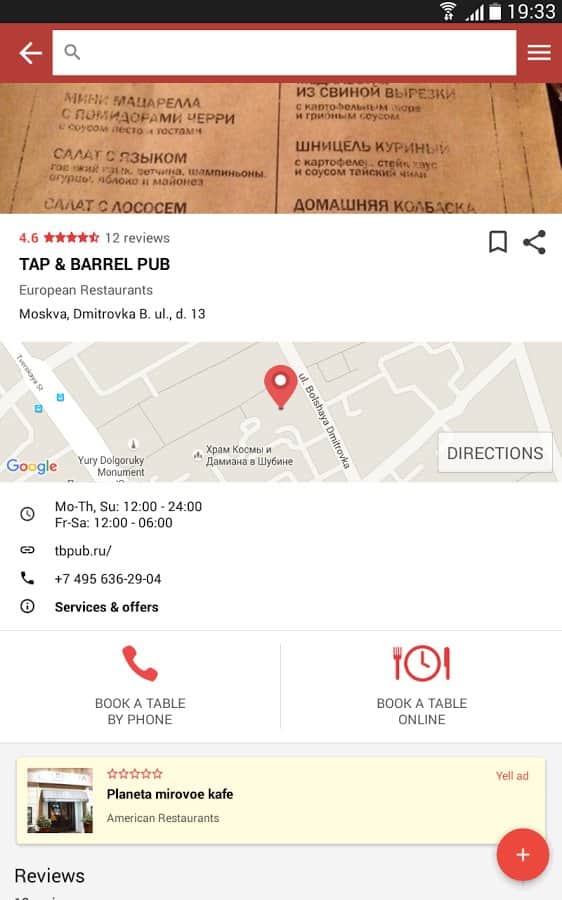 Yorumlar ile YELL.RU üzerinde Android