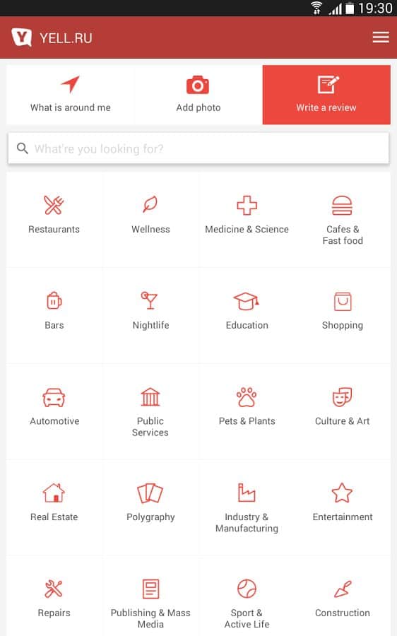 YELL.RU – eğer seyahat etmeyi seviyorsanız veya sadece güzel bir şekilde dinlenebileceğiniz bir yer arıyorsanız, bu uygulama tam da ihtiyacınız olan şey. YELL.RU, kategorilere göre sunulan devasa bir veri tabanına sahiptir (otomobil, kulüpler, tıp, kültür ve sanat, devlet ve toplum, evcil hayvanlar vb.), kesin adres, telefon, haritadaki konum bilgisi ve belirli mekanlarla ilgili yorumlarla birlikte. Belirtilen numaraları arayabilir, uygulamadan çıkmadan kendi fotoğraflarınızı ekleyebilir ve yorum bırakabilirsiniz. İyi eğlenceler!