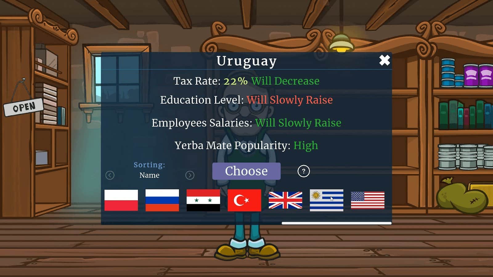 Uruguay, Arjantin, Paraguay'ın ulusal içeceğini hazırlayın ve ürününüzü kendi ülkenizin topraklarında tanıtın! Yerba mate, kahveye alternatif olarak ünlüdür ve bu muhteşem içeceğin tadını köklü bir şekilde değiştiren 156'dan fazla ilginç katkı maddesi ekleme imkanı sunar. İşletmeniz için önemli kararlar alın, mağazanız için bir plan geliştirin, yeni şirketler satın alın, mekanınızın popülaritesini artırın, satın aldığınız ekipmanı geliştirin ve yüksek kazançla satış yapın!
