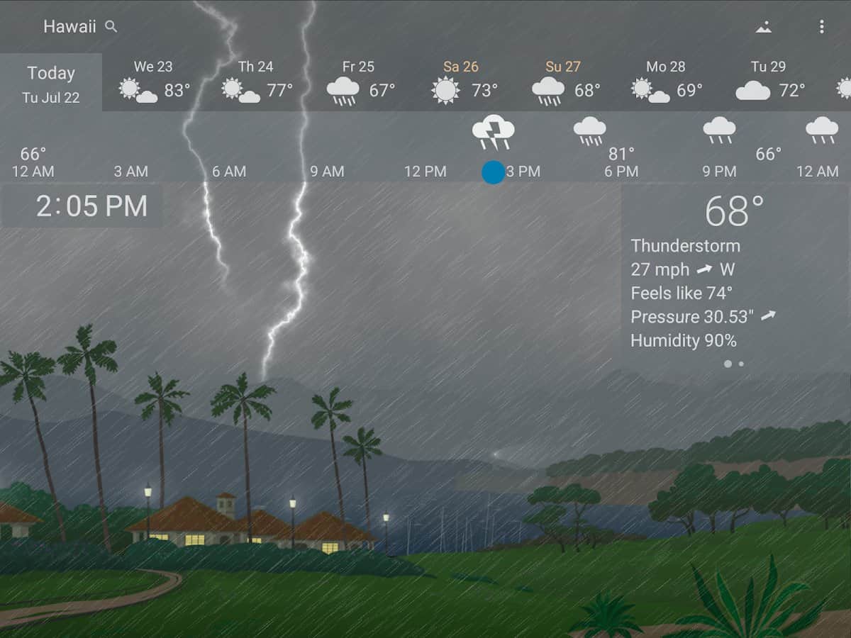 Normal hava tahminini çeşitlendirmek için farklı yollar vardır, örneğin, bunu akıllı telefonunuzun veya tabletinizin ekranındaki güzel bir manzaraya uygulamak. YoWindow, gerçek havayı ekranınızda gösterir (eğer pencereye bakmaya üşeniyorsanız) ve tahmin için zaman çizelgesinde parmağınızı kaydırmanız yeterlidir; böylece gün boyunca havanın nasıl değişeceğini görebilir, ayrıca birkaç gün ileriye dönük tahmin de alabilirsiniz. Aynı şekilde güneşin doğuş ve batış zamanını da görebilirsiniz. Havanın gösterileceği birkaç manzara bulunmaktadır ve bunlar günün saatine, hava durumuna ve mevsime bağlı olarak değişecektir. Ayrıca, uygulama bilgilendirici canlı duvar kağıtları rolünü de mükemmel bir şekilde üstleniyor.