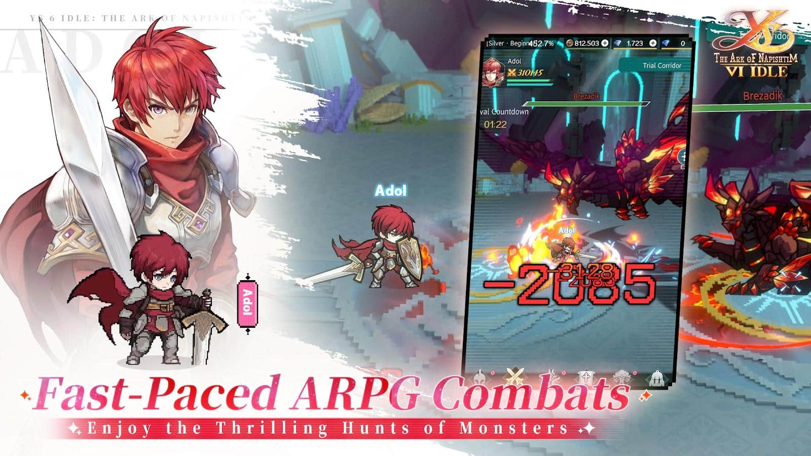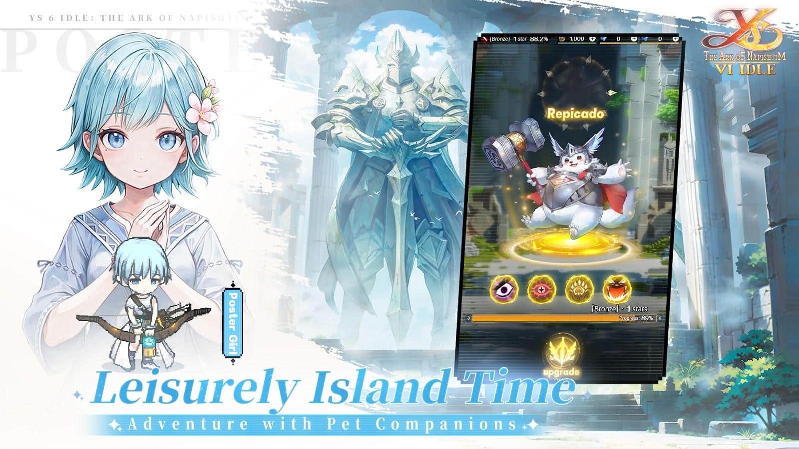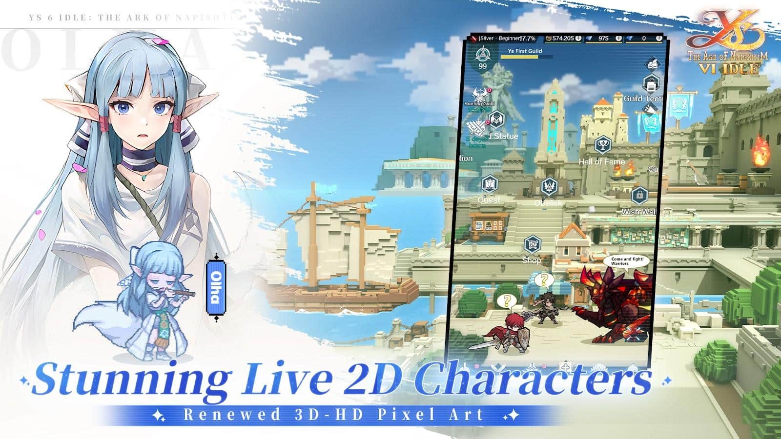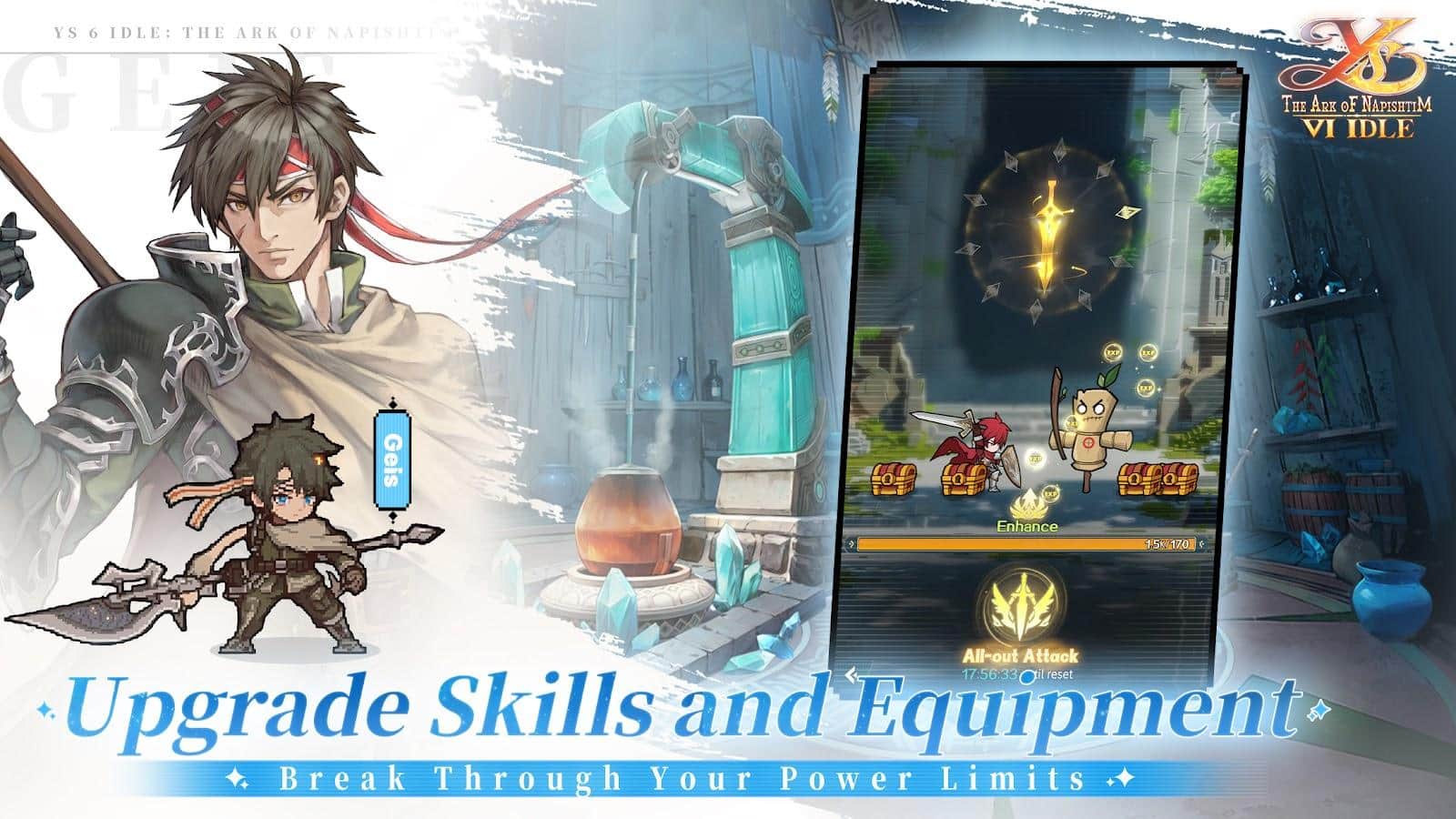 Ys 6 Idle: Napishtim'in Sandığı - heyecan verici maceralar ve epik savaşlar dünyasına harika bir dönüş, benzersiz 3D-HD piksel grafiği ile sunuluyor. Falcom'un resmi lisanslı RPG'si, oyuncuları kızıl saçlı kahraman Adol'un iki gizemli elf kızı Olka ve Işay tarafından kurtarıldıktan sonra Kan'an'ın gizemli adalarına düşmesi hikayesine daldırıyor. Zengin kültürü ve antik sırları ile Kan'an adaları, unutulmaz bir macera için arenaya dönüşüyor. Oyuncular, yerel Reda kabilesi ile gizemli Arisyancılar arasındaki karmaşık siyasi entrikaların üstesinden gelmek, yeni arkadaşlar ve kahramanlarla bir araya gelmek zorunda kalarak yeni evlerini tehditlerden korumalılar.