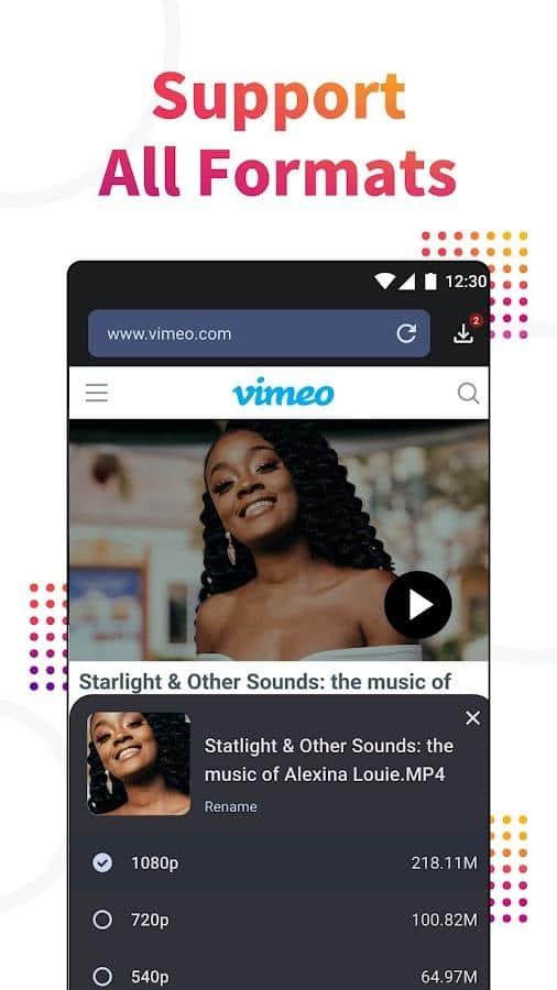 Video İndirici - Bu uygulamayı indirerek, bulunduğunuz seçilen web sitesindeki tüm videolara otomatik olarak erişim kazanırsınız. İndirmek istediğiniz videonun bulunduğu sayfaya gidin, ardından bunu yapın ve dosyayı mevcut formatlardan birinde alın: mp3, m4a, mp4, m4v, mov, avi, wmv. Sadece video dosyalarını değil, aynı zamanda çevrimdışı ses dosyalarını da indirmeniz mümkündür. Tarayıcı sayesinde sayfalar arasında kolayca geçiş yapabilir, her türlü videoyu indirebilir ve bunları kendi amaçlarınız için kullanabilirsiniz.