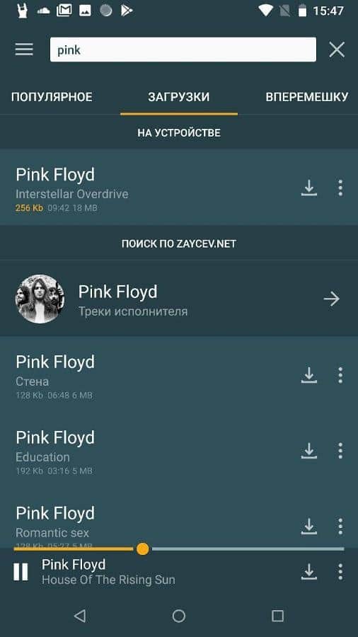 Zaycev.net, müziğe para vermeye alışkın olmayan veya satın almadan önce yeni albümü dinlemek isteyenler için Android'de faydalı bir uygulamadır. Bu isimli siteden gelen bu yardımcı program ile favori parçalarınızı tek tek veya tam albüm halinde tamamen ücretsiz indirebilirsiniz. Veritabanında her zevke uygun en güncel müzik yenilikleri bulunmaktadır. Kendi kişisel çalma listelerinizi oluşturun ve internete bağlı olmadan bile dinleyin. Zaycev.net, gerçek bir müzik tutkununun ihtiyaç duyduğu her şeye sahiptir.