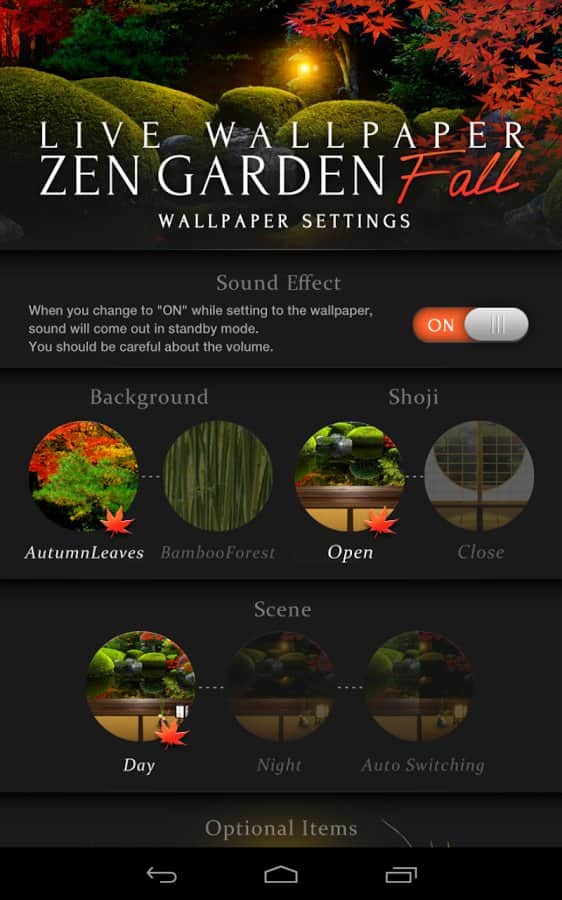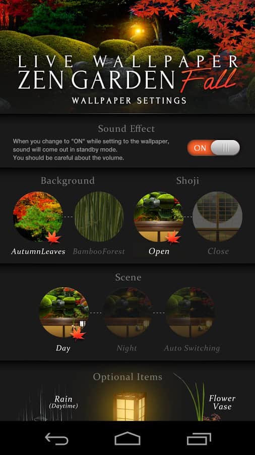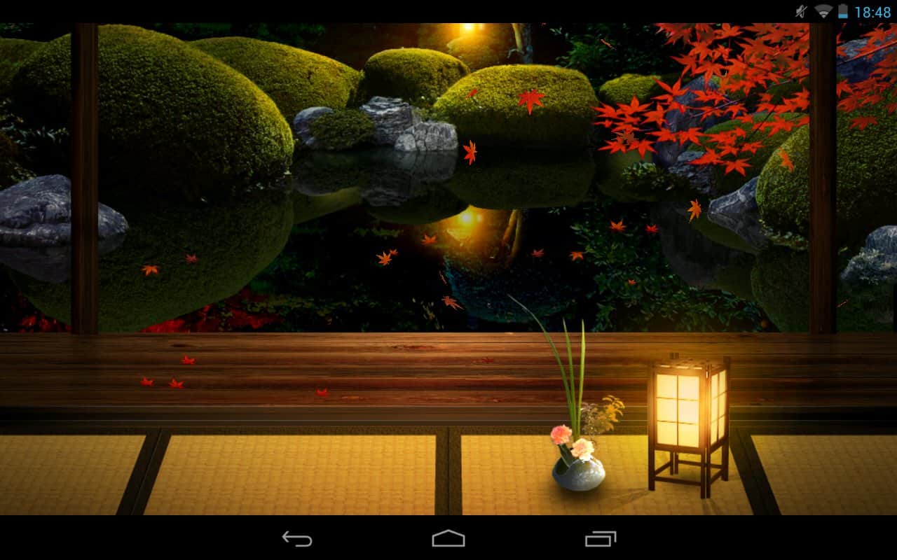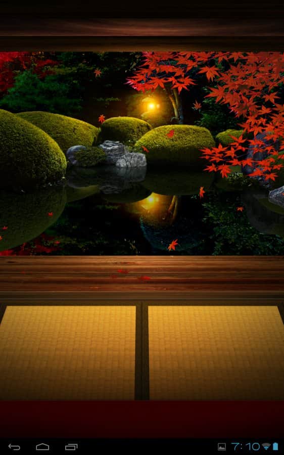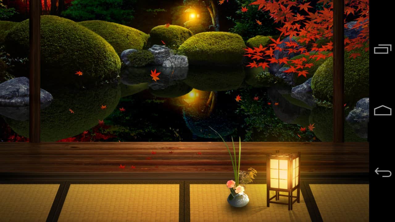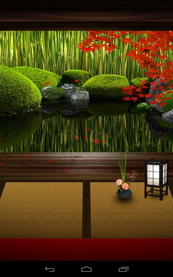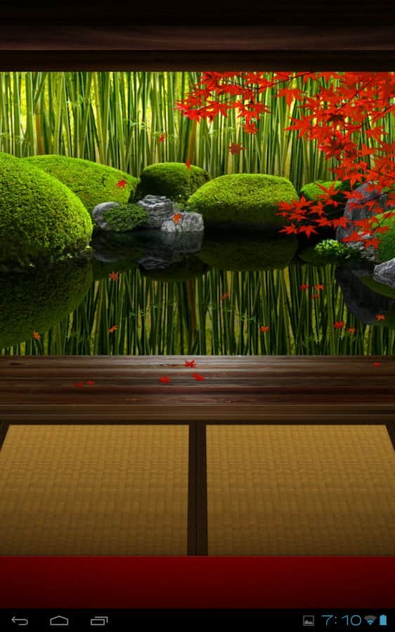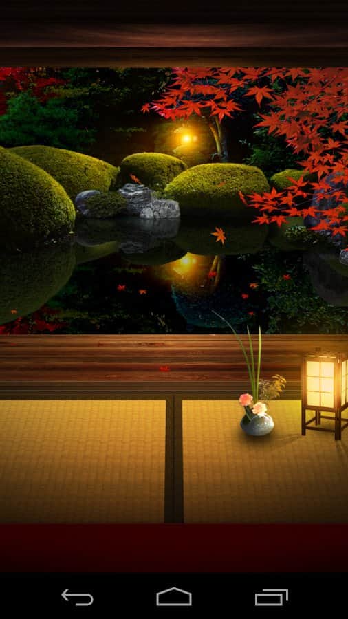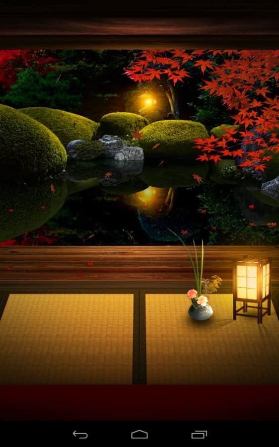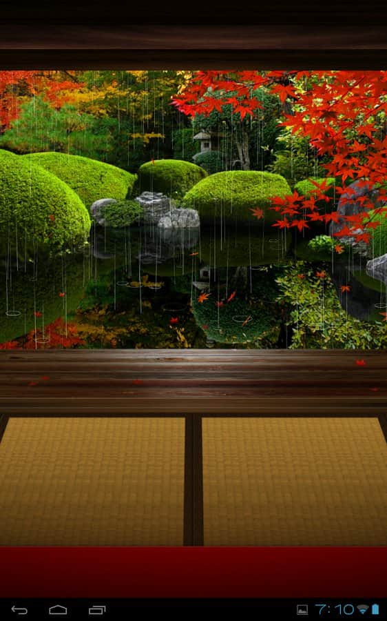 Zen Bahçesi -Sonbahar- LW – renkli canlı duvar kağıtları Android cihazlar için Japon bahçesinde güzel bir sonbahar ile. Burada yağmur damlalarının sesini, rüzgarın melodiyle çalınan çan sesini ve daha fazlasını duyacaksınız. Ki enerjisini hissedin. Sonsuzluğa dokunun!