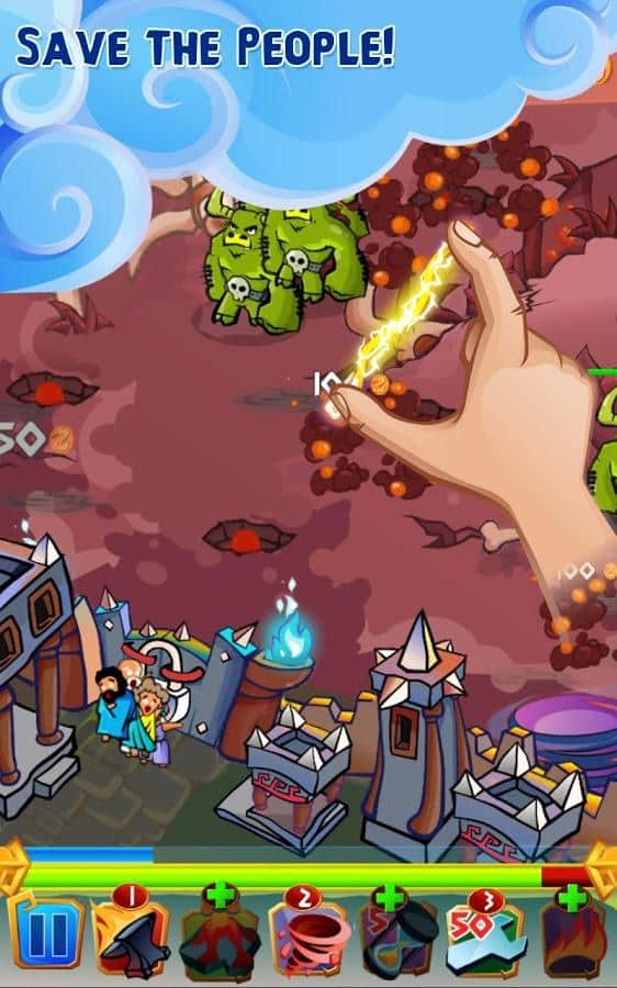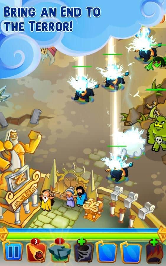 Zeus Savunması - bu stratejide büyük Zeus'a, Olimpos'un tanrısına, yardımınıza ihtiyaç var. İsyancı tanrılar, buldukları her şeyi yok ediyor ve buna tanrılara tapan insanları da dahil ediyor. Zeus'un gücünden ve çeşitli elementlerden yararlanarak tanrıların istilasıyla başa çıkın: