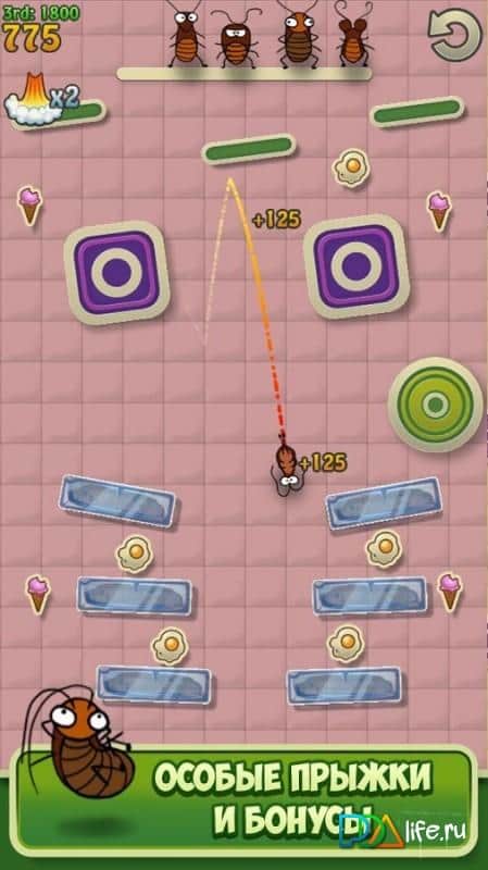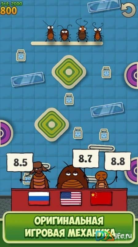 Sıçrayan Böcekler - Android için dinamik bir arcade oyunu olup, ilginç bir oyun deneyimi sunmaktadır. Bu oyunda, bir takım böceği yöneterek onları dünya çapında hamamböceği sıçrama yarışmalarında zafere götürmeniz gerekiyor. Evet, biraz alışılmadık bir yaklaşım. Sizleri, çeşitli engellerle dolu yerlerde 50'den fazla farklı seviyenin beklediği bir macera bekliyor. Göreviniz, korumanızı havaya göndermek ve böylece alandaki dağınık nesnelerle mümkün olduğunca çok çarpışmasını sağlamak, böylece daha fazla puan kazanmak. Bu arada, sanatsal manevralarınızı gerçekleştirmenizde size yardımcı olacak çeşitli bonusları ve geliştirmeleri de unutmayın. Ve seçkin izleyiciler ile katı jüri, sıçramalarınızı değerlendirecek ve bir karar verecek. Öyleyse, takımınıza zafer kazandırın ve spor Olimpiyatları'na yükselin, gerekirse bu uğurda parçalanmayı göze alın.