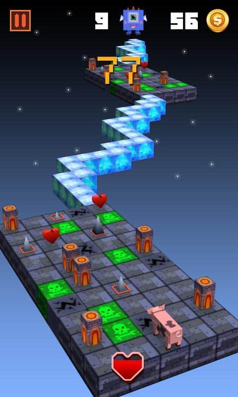 Zigzag Geçidi – kahramanınıza tehlikeli yolda mümkün olduğunca ileri gitmesine yardımcı olun. Kahraman, havada asılı duran platformlarda hareket ediyor, ana göreviniz onu tuzağa düşürmemek ve uçuruma düşmesini engellemektir. Bir platformdan diğerine atlayın ve acele edin, çünkü arkanızdaki platformlar yok oluyor. Bu oyunda mümkün olduğunca ilerlemeye çalışın ve tuzağa düşmeyin. Hangi yöne gitmek istediğinize bağlı olarak ekranın sağ veya sol tarafına dokunun. Beş benzersiz dünyayı geçin ve blok grafiklerin tadını çıkarın. 20'den fazla karakteri açın ve liderlik tablosunun en üstüne çıkın.