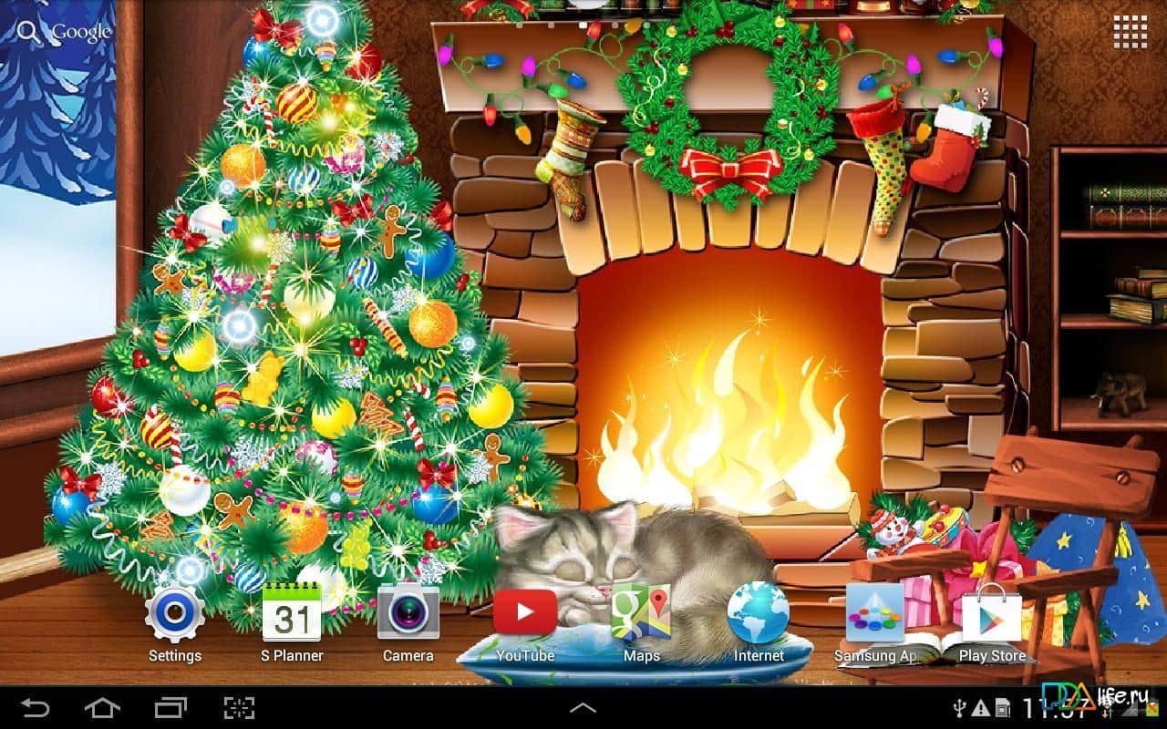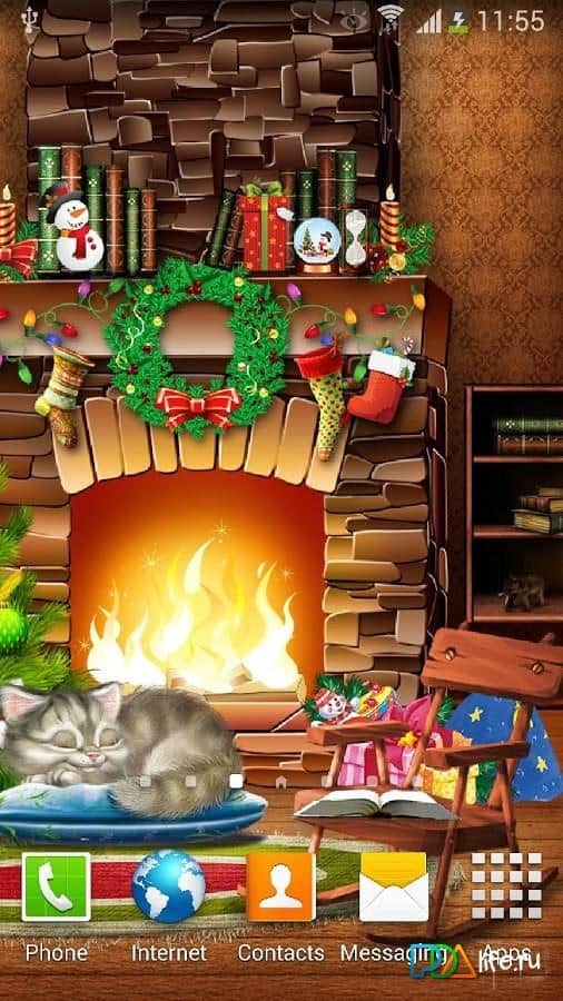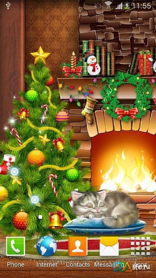 Kış Akşamı Canlı Duvar Kağıtları – aile sıcaklığı, konfor ve sihirle dolu harika tatil canlı duvar kağıtları. Yanan şöminenin önünde bir kedi uyuyor, ışıklarla parlayan bir çam ağacı var, hediyeler için çoraplar asılmış ve sanki içinde oturan kişi şimdi kalkıp uyumaya gitmiş gibi sallanan bir koltuk var. Duvar kağıtları, optimal tatil atmosferini yaratmak için birçok farklı ayar içeriyor.