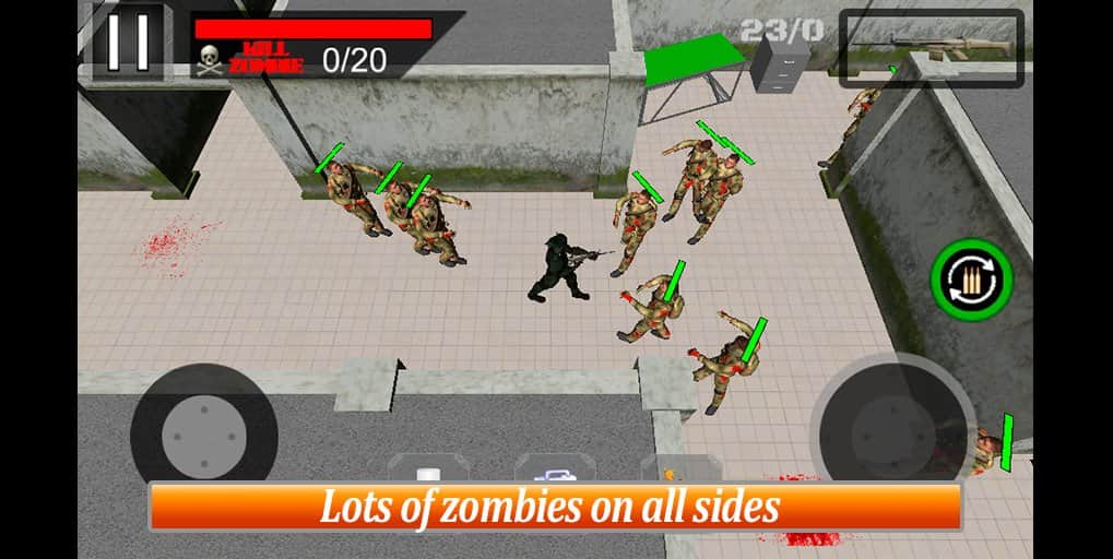 ZomB: Üsde Zombi – Android için zombi kıyameti, burada düşmanları askeri üsten temizleyeceksiniz. Bir askeri kontrol altına alın ve onu olayların en yoğun olduğu yere yerleştirin, burada her taraftan yürüyen ölüler tarafından saldırıya uğrayacak. Büyük bir silah cephaneliğinden hoşunuza giden silahı seçin ve bu oyunda mümkün olduğu kadar uzun süre dayanmaya çalışın. Önünüzde üç tür zombi ile karşılaşacaksınız; bazıları yürüyerek, bazıları koşarak, bazıları ise ateş açarak gelecek. Askeri üssün odalarında ve koridorlarında dolaşın ve zombileri temizleyin. Yol boyunca bombalar, güçlü ekipmanlar ve sağlık paketleri gibi birçok bonus toplayın.