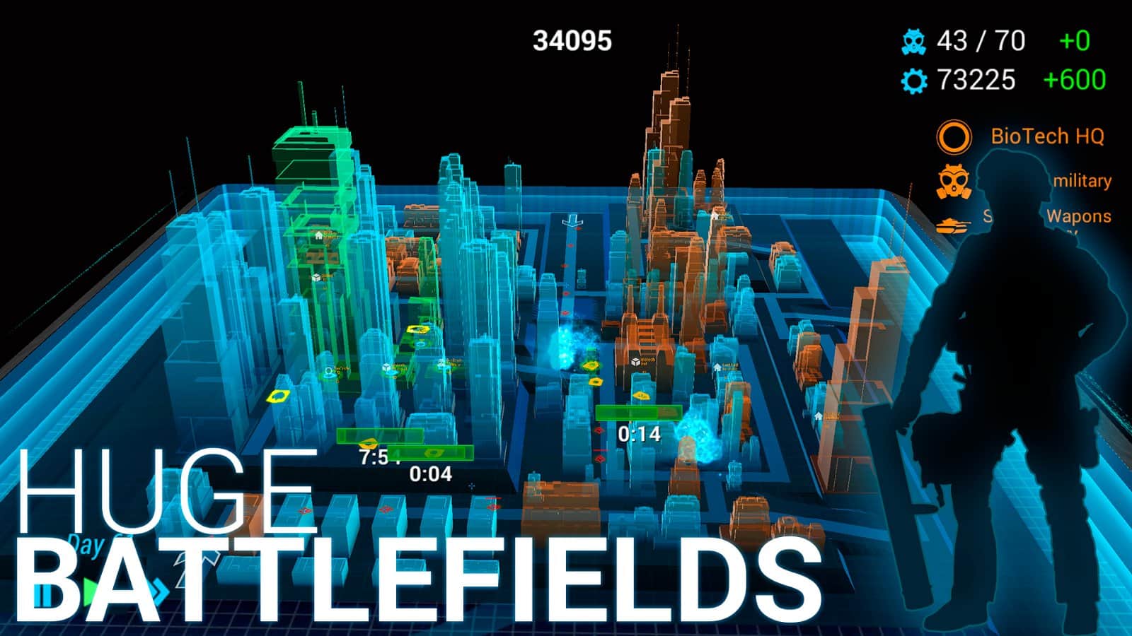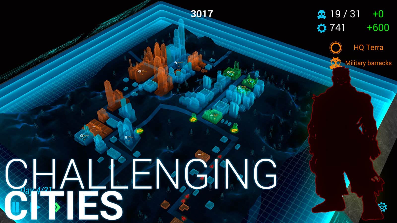 Zombi: Şehrin Korunması / Zombie City Defense - Güzel bir neon tarzında yapılmış harika bir Android stratejisi. Göreviniz, şehirdeki kalan binaları zombilerden korumak ve aynı zamanda zaten ele geçirilmiş olanları temizlemeye çalışmaktır. Oyun kule savunma tarzında yapılmıştır, bu nedenle tüm mücadeleniz düşman dalgalarını geri püskürtmekle geçecek. Oyunda birçok farklı silahlı birim bulunmaktadır, bu nedenle oyun her aşamasında ilginç olacaktır.
