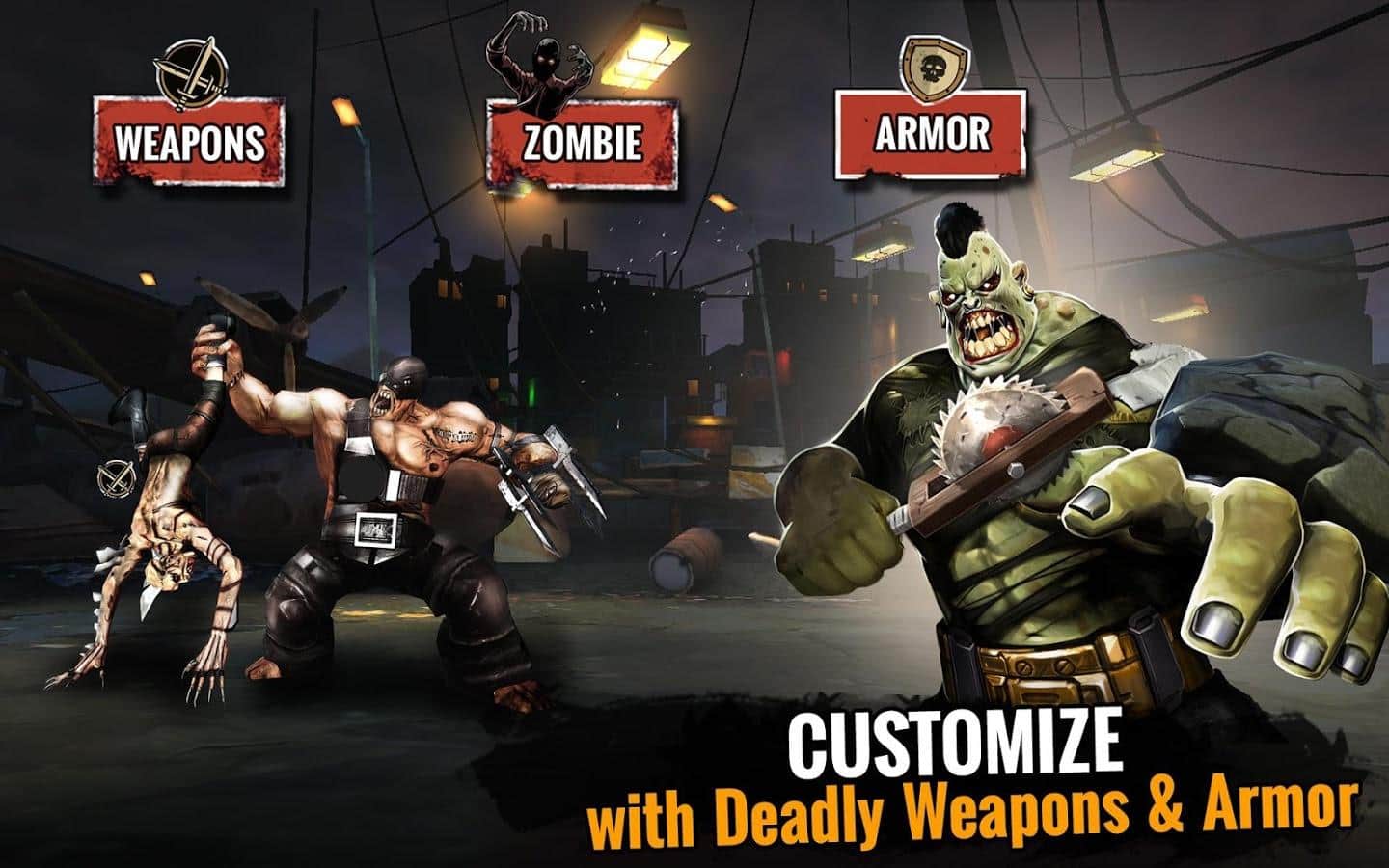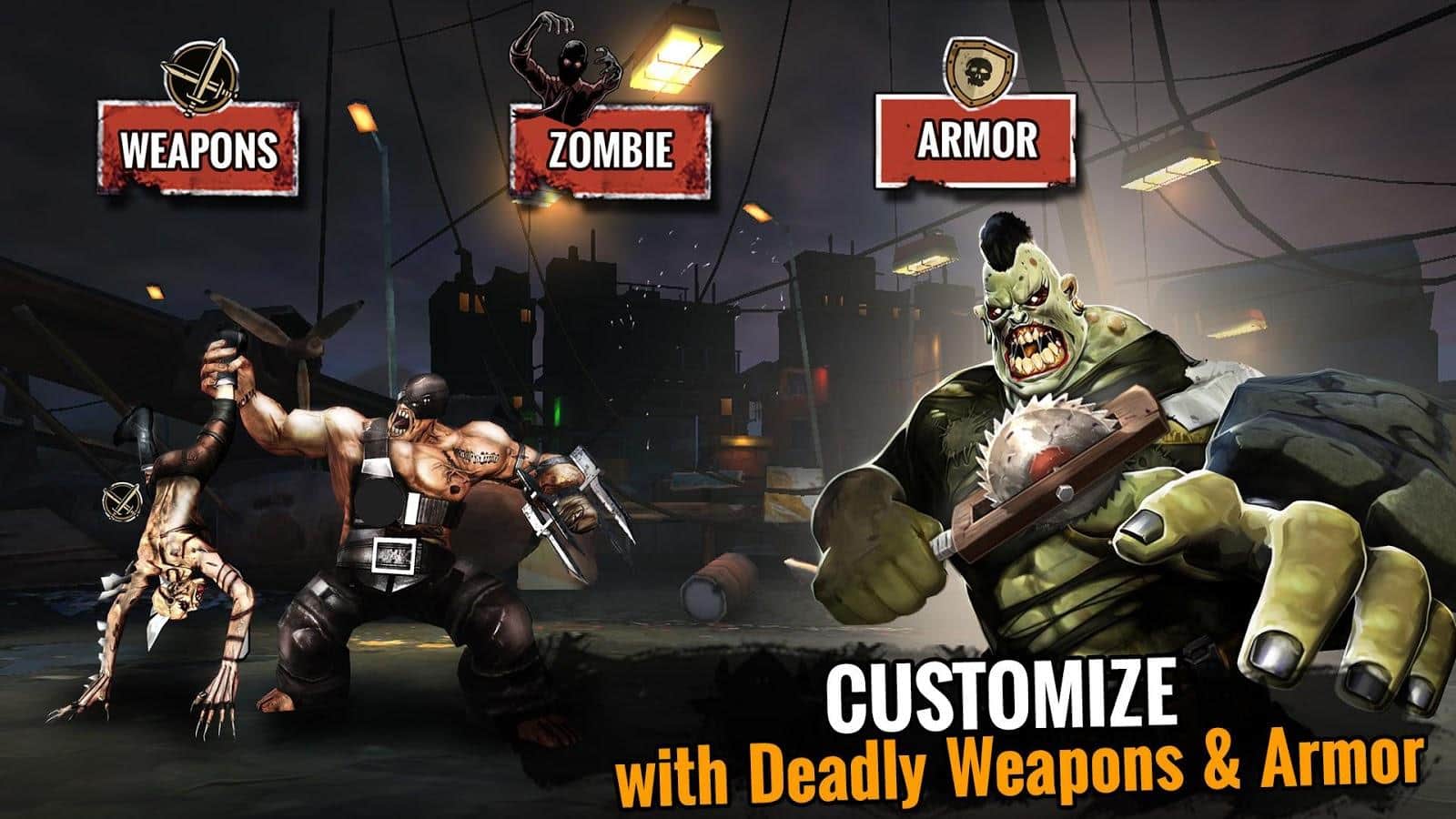 Zombi Ölüm Maçı - 2036 yılına gelindi, genetik olarak modifiye edilmiş bir serum, alındıktan sonra tüm insanları canavarlara ve zombilere dönüştürüyor. Papa Rainbow adında yeni bir baş düşman ortaya çıktı, o tüm yürüyen ölüleri kontrol ediyor ve tüm canlıları yok etmeyi hedefliyor. Göreviniz, zombilerden oluşan ekibinizi toplamak ve onları mümkün olan her türlü silah ile donatmaktır. Savaş arenasında yüz yüze gelmek zorunda kalacağınız tüm canavarlara hazır olun. Üç farklı savaşçı sınıfınız olacak ve farklılık, benzersiz yeteneklerde yatıyor.
