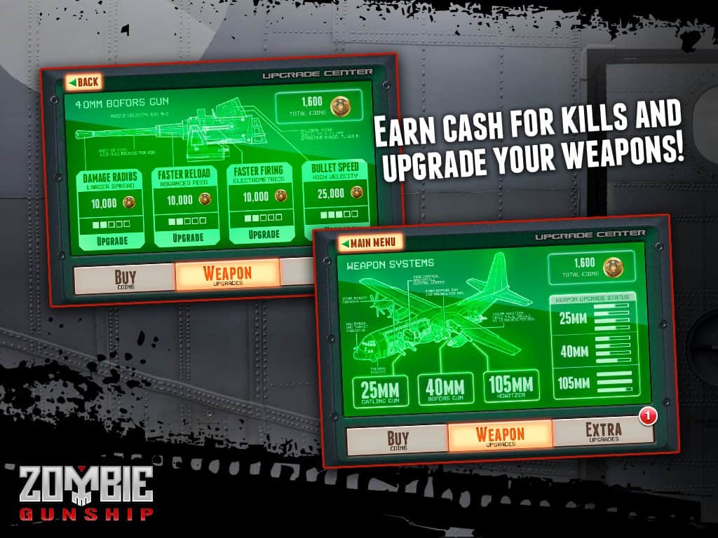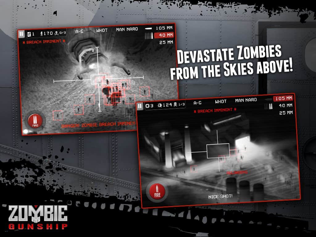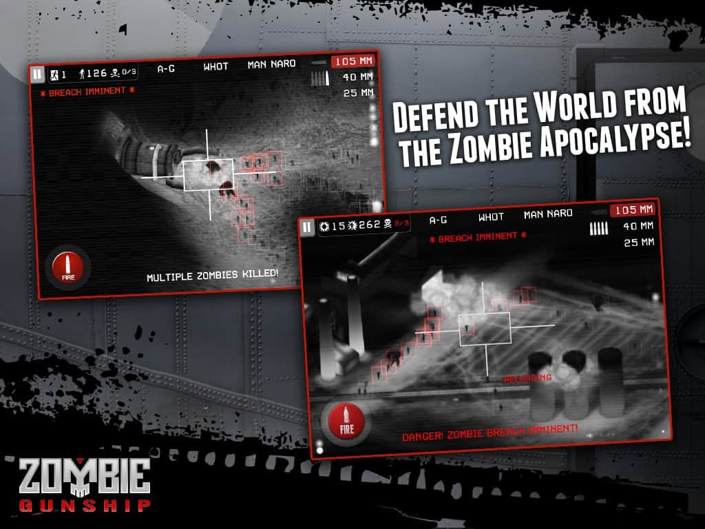 Zombie Gunship – Android'de bir savaş, zombilere karşı amansız bir savaş sürüyor. Siz ağır silahlı AC-130 saldırı uçaklarının nişancı koltuğundasınız. Yolunuzdaki tüm yaratıkları yok edin. Oyun, gece görüşü 3D ekran tarzında geçiyor. Zombilerin tehditlerini mümkün olan en kısa sürede tespit etmek ve ortadan kaldırmak için radarı kullanın. Size 25 mm Gatling topları, 40 mm Bofors otomatik top ve 105 mm obüs mevcut. Toprağı ölülerden temizleyin.