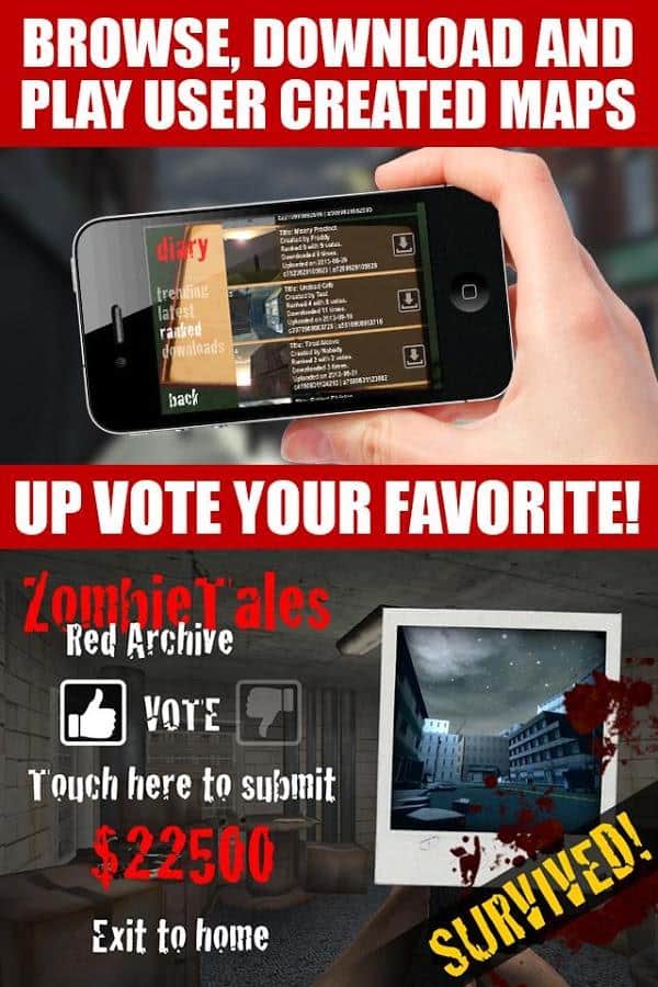 Zombi Hikayeleri - Android için üç boyutlu bir zombi nişancısıdır, burada kendi seviyelerinizi ve haritalarınızı oluşturabilirsiniz. Oyunda iyi bir grafik ve av tüfeğinden otomatik silahlara kadar geniş bir silah yelpazesi var. Oyun, kullanıcılar arasında seviyelerin değişimi ve oyuncuların en başarılı harita uygulamalarını seçtiği bir oylama modu içeriyor. Haritalar oluşturmanın yanı sıra, mevcut olanları da oynayabilirsiniz.