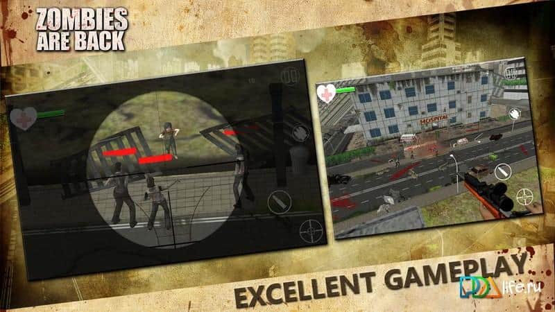 Zombiler Geri Döndü - zombi kıyametinden birkaç ay sonra, hayatta kalan çok az insan kaldı. Virüs gezegenin her yerine yayıldı ve onarılmaz hasar verdi. Ve şimdi elinize keskin nişancı tüfeğini alıp hedefinize gelen tüm zombileri öldürmeye başlayacaksınız. Zombileri öldürün ve hayatta kalan insanları onlardan kurtarın, ayrıca çeşitli görevleri tamamlayarak ödüller kazanın.