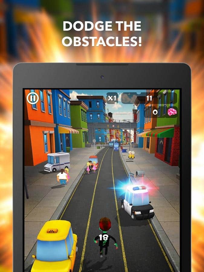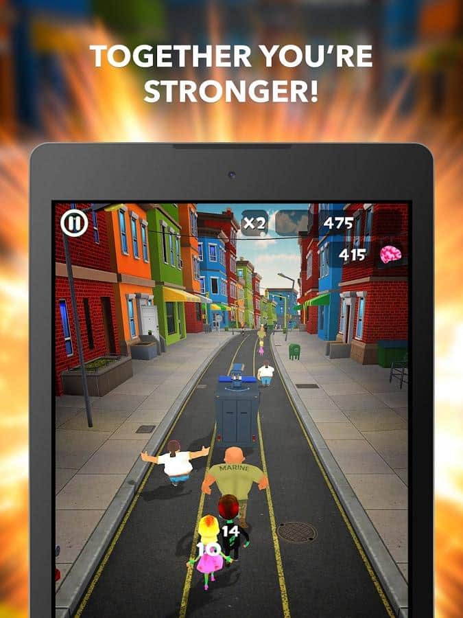 Zombiler: Ölmez Koşu Yer – Android için bir koşu oyunu, burada zombi kontrolünü alacak ve onun, insanların kurduğu tehlikeli tuzaklardan kaçmasına yardımcı olacaksınız. Bu oyunda zombilerin neler yapabileceğini gösterme fırsatını yakalayacak ve herkese insanların ölülerin yavaş olduğunu düşündüğünde hata yaptıklarını kanıtlayacaksınız. Koşun, zıplayın ve yolunuzdaki tüm engelleri aşmaya çalışarak bitiş çizgisine ulaşmaya ve hız rekorunuzu kırmaya çalışın. Kahramanınızın zıplaması veya doğru yöne dönmesi için telefonunuzun veya tabletinizin ekranına zamanında dokunun. Yolda, tüm engelleri yok etmenize ve seviyeyi daha hızlı geçmenize yardımcı olacak çok sayıda bonus ve güçlendirme toplayın.