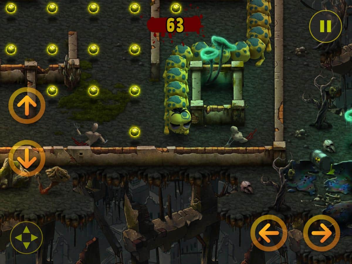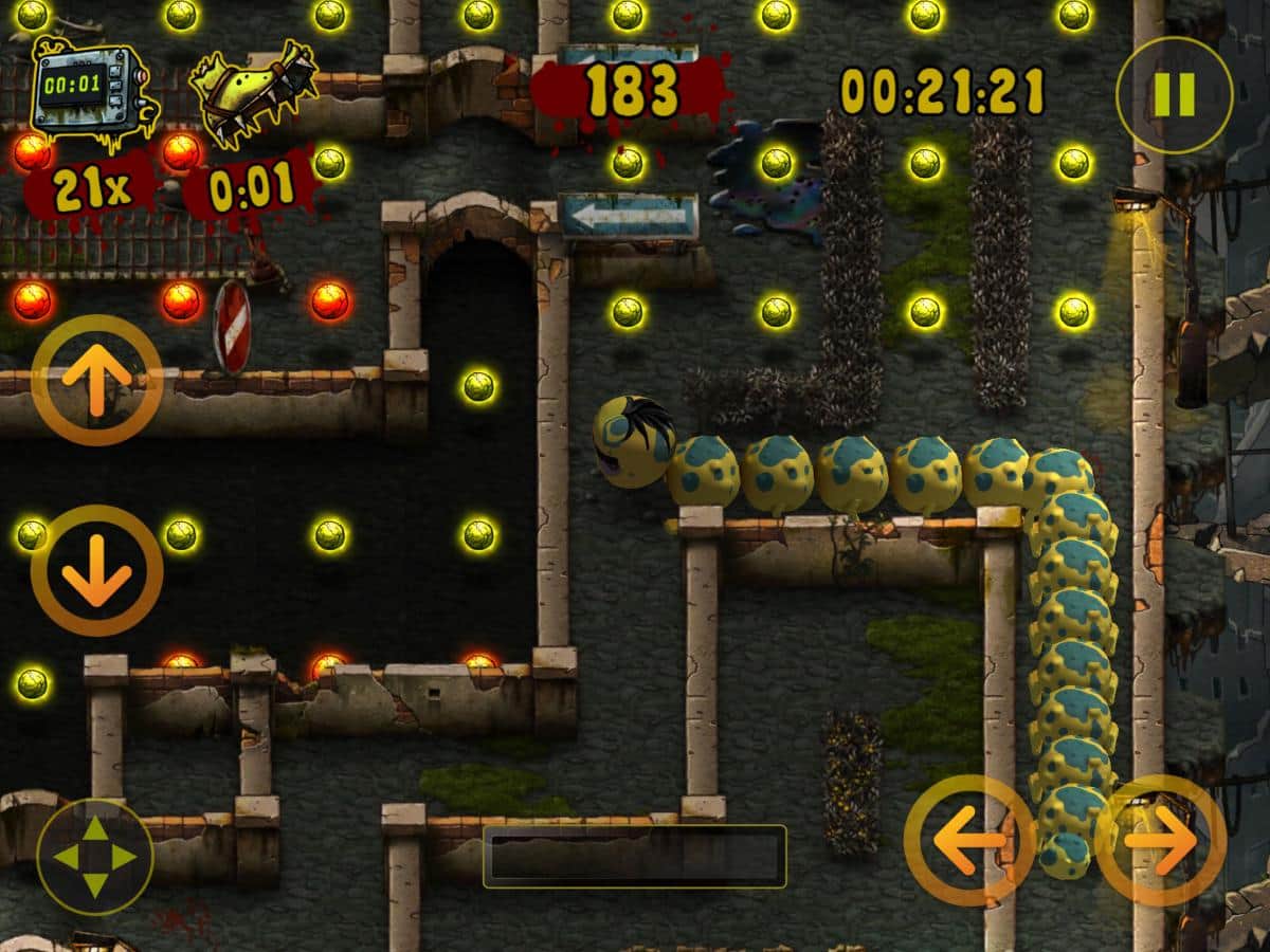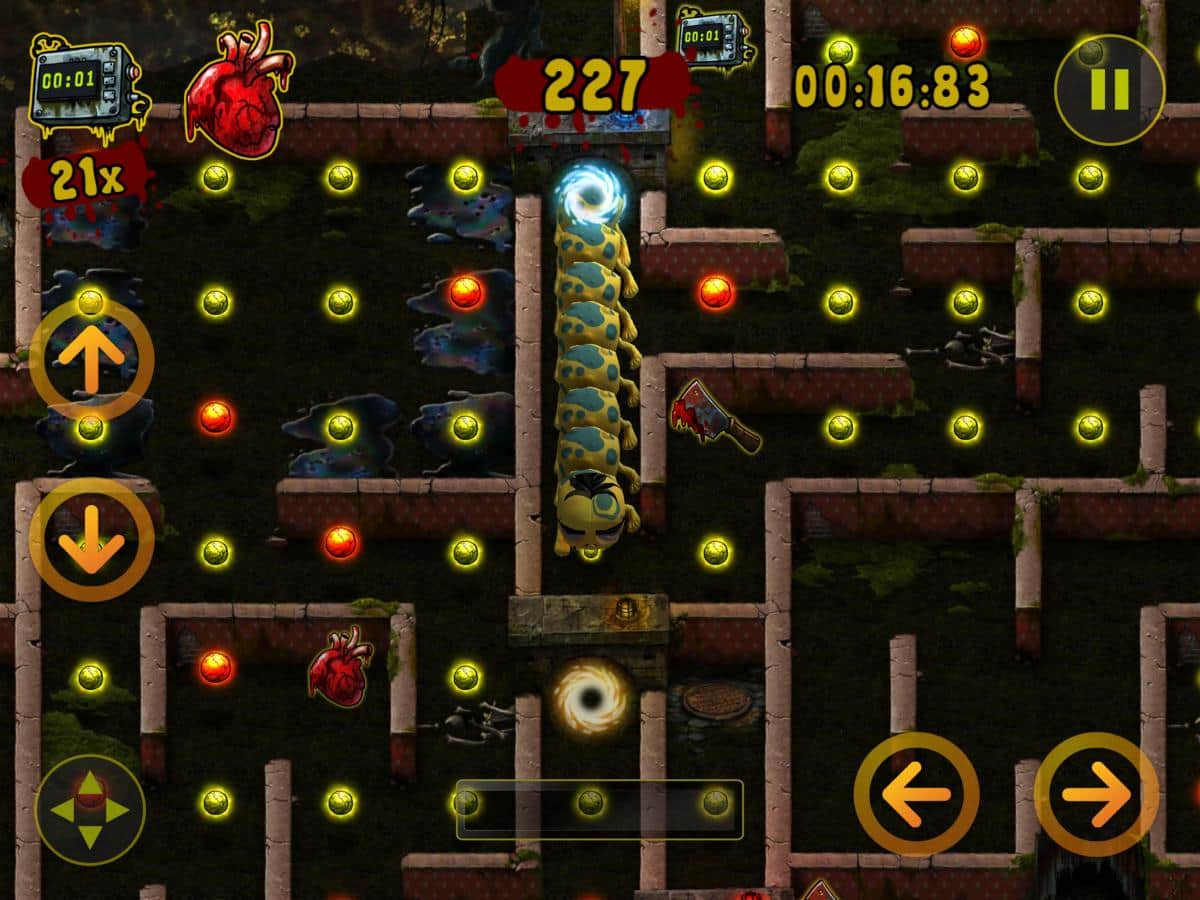 Zombillie – IOS için eğlenceli bir arcade oyunu, burada bir tırtıla yiyecek toplamasında yardım edeceksiniz. Bu oyunda bir zombi kıyameti sonrası dünyasında yer alacaksınız, burada tırtılınıza et parçalarını toplamasında yardımcı olacaksınız, karmaşık bir labirentte hareket ederek. İlerleyin ve et parçalarını toplayın, bu arada kuyruğunuza çarpmamaya çalışın. Seviye ilerledikçe tırtılınız boyut olarak büyüyecek ve oyunun sonuna ulaşmak için epey çaba sarf etmeniz gerekecek. Oyunun ana özellikleri 100 benzersiz seviye, 3 mekan, 2 mini oyun ve birçok bonus ve güçlendirmedir.