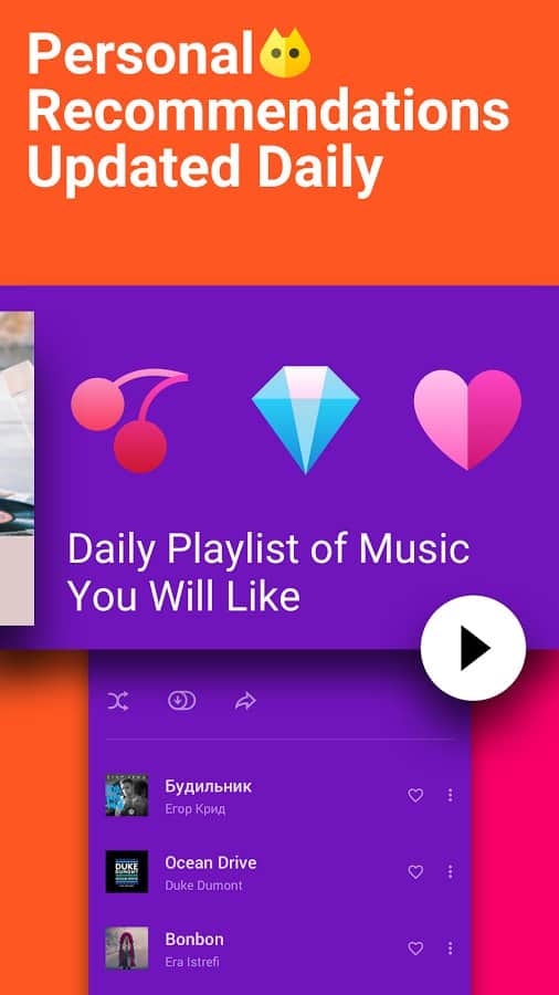 Zvooq – kesintisiz müzik dinlemeyi sevenler için hoş bir arayüze sahip iyi bir uygulama. Bu uygulamayı indirip kurduğunuzda, sevdiğiniz müziği internet erişimi olmadan, sizin için uygun bir ses kalitesinde dinleme imkanı elde edersiniz. Sevdiğiniz şarkıları, albümleri toplayın, kendi koleksiyonlarınızı ve 15 milyon parçadan oluşan çalma listelerinizi oluşturun ve müziğin tadını hem çevrimiçi hem de çevrimdışı (telefonunuzdan müzik dinlemek isterseniz, önceden indirerek) çıkarın. Koleksiyonunuz her zaman zvooq.com'da dinlemek için erişilebilir olacaktır.